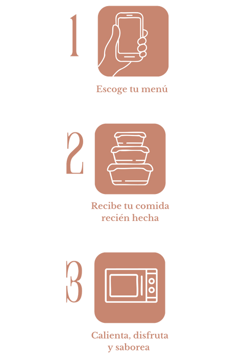 Es súuuuuper fácil: elaboras tu menú semanalmente y eliges tus platos favoritos online. De esta manera, si te gustan más unos platos que otros, siempre tendrás la opción de cambiarlos y modificarlos. Nosotros te los enviamos envasados y listos para guardar en la nevera hasta 3 semanas, de tal forma que, semana tras semana, tendrás comida casera y saludable sin necesidad de cocinar a diario.